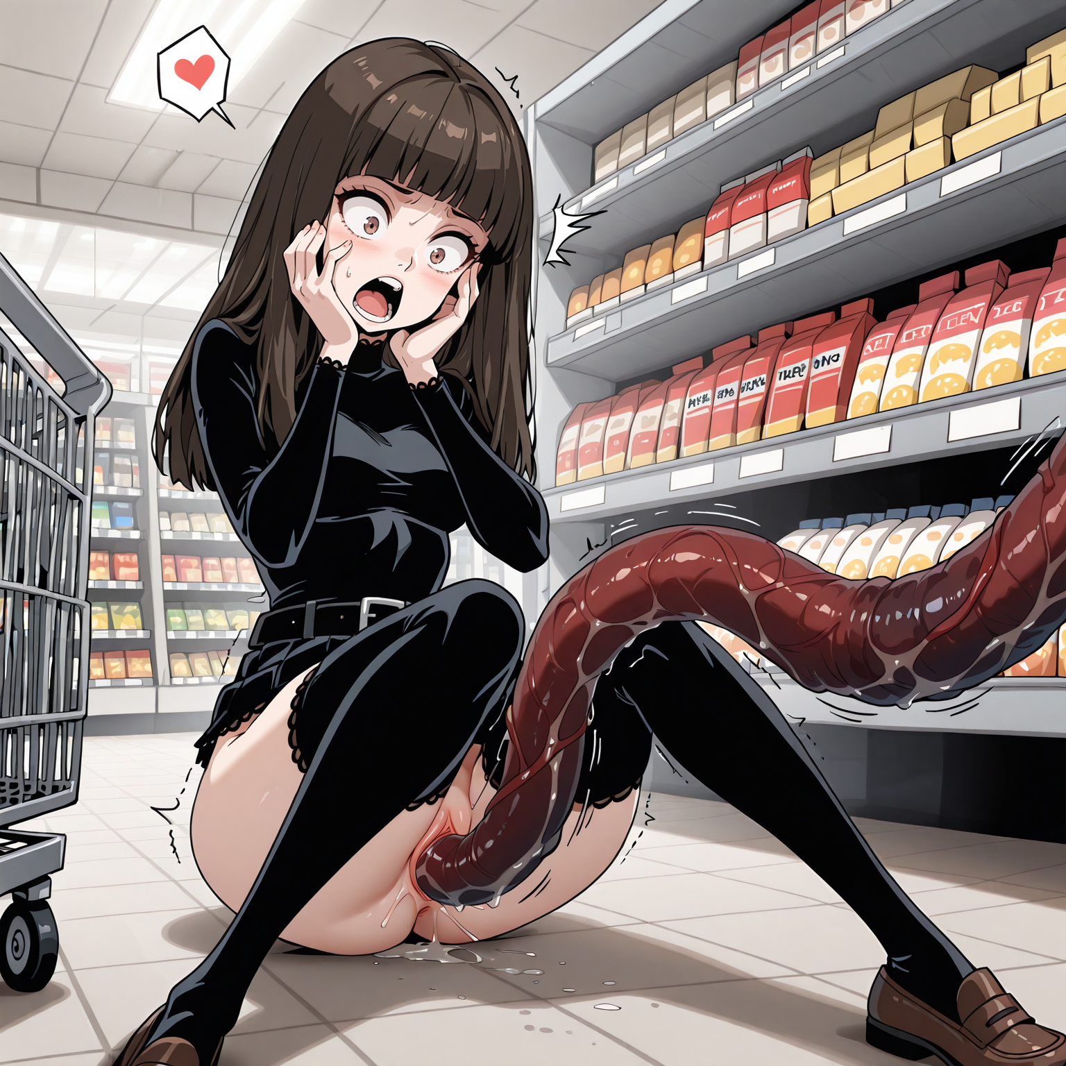 SURPRISETENTACLEXD, タコセックス, 陰部へのタコ挿入, タコによる抓住, 床の上, もがいている, 座った姿勢, 足を広げた, 後ろに傾く
