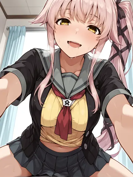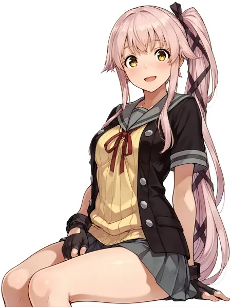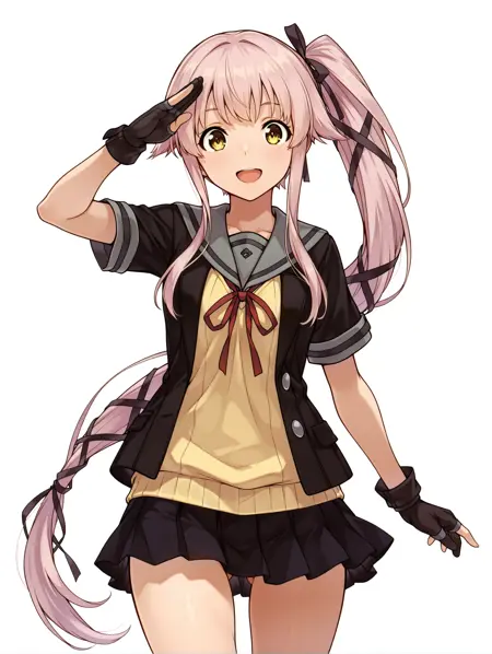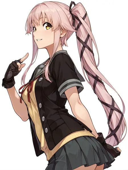 トリガーワード ・l_c_yura_kai2,pink hair,yellow eyes,Side ponytail,hair ribbon,very long hair,