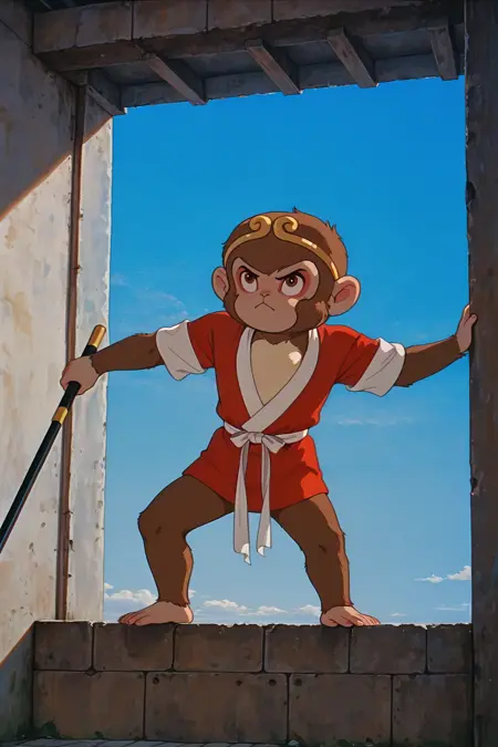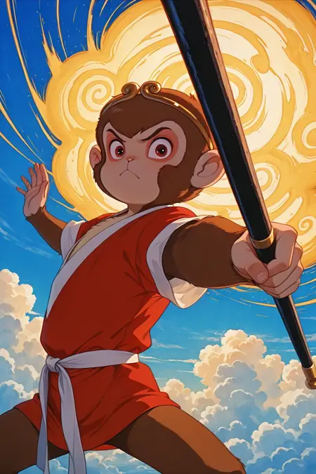 Trained on 317 upscaled images from the 1960 Japanese film Alakazam The Great based on the legendary 16th-century Chinese novel of Journey to the West.