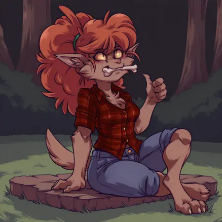 Lora of the adorable and swift Winnie Werewolf, of the early PlagueofGripes design. Database consists of sketches and colored drawings gathered from Newgrounds, and some comic panels from Scary Lessons.