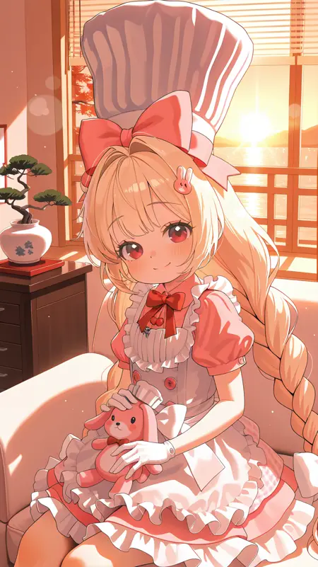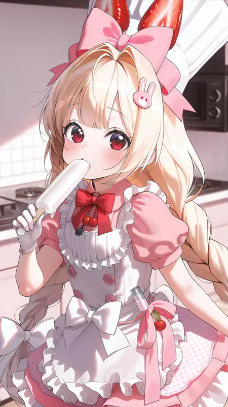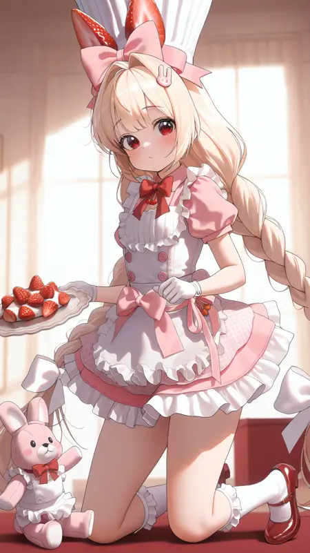예시 프롬프트: 긴 머리, 뺨빛, 앞머리, 금발, 머리장식, 붉은 눈, 장갑, 모자, 드레스, 리본, 동물 귀, 더블테일, 매우 긴 머리, 땋은 머리, 짧은 소매, 머리 리본, 프릴, 신발, 양말, 풍선 소매, 흰 장갑, 토끼 귀, 앞치마, 빨간 리본, 더블 땋은 머리, 풍선 짧은 소매, 무릎높이 양말, 흰 머리장식, 프릴 드레스, 흰 리본, 흰 양말, 빨간 신발, 분홍 드레스, 흰 앞치마, 프릴 앞치마, 음식 테마의 머리장식, 토끼 머리장식, 셰프 모자, 프릴 양말,