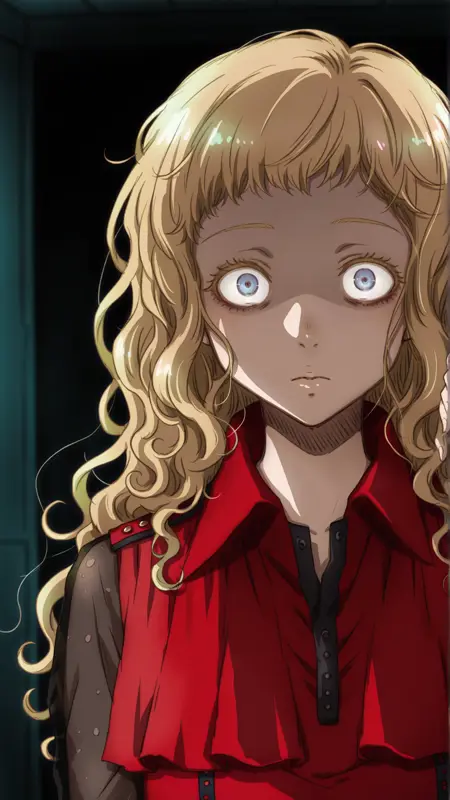 외모: 금발, 긴 머리, 파란 눈, 곱슬머리, 물결무늬 머리,