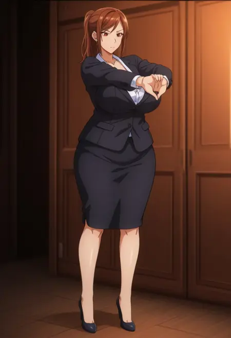 h1saz4_hwyns、白い肌、茶色の目、ポニーテール、茶色の髪、秘書、妻