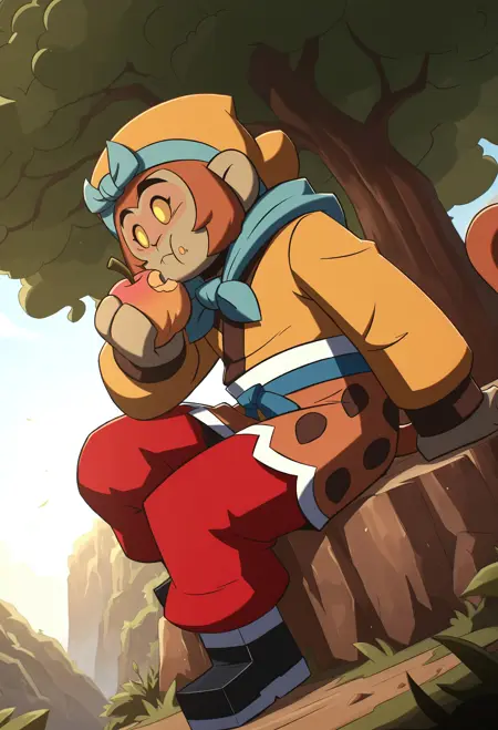 alternate costume, alt1, teal neckerchief, yellow tunic, black sleeves, white belt, red pants, black shoes
