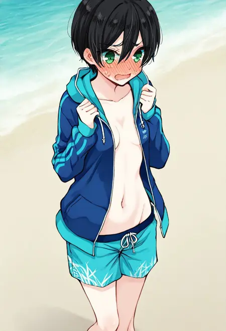 1girl, sagimiya_ryou, 短发, 绿眼, 小胸, 黑发