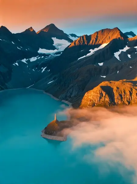 阿尔卑斯山壮丽的空中景象,结合Qwen模型对提示词的出色遵循,能够通过提示词生成现实中难以见到的惊人景色。