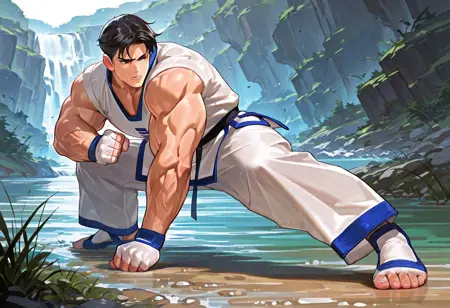 이 모델은 킹 오브 파이터의 캐릭터인 김카프완을 기반으로 하며, 이 모델로 생성된 작품은 캐릭터를 강조하며, 다른 캐릭터와 함께 등장하거나 단독으로 이미지에 나타날 수 있습니다.