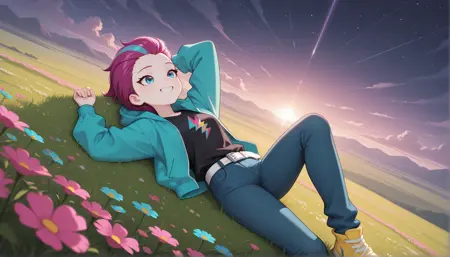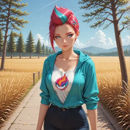 | 训练词汇 | purple hair with pink and turquoise streaks已复制! Clothes: black tight T-shirt and short turquoise jacket. Loose jeans with a print of pink and turquoise shades on the lower part of the legs. Jeans are belted with a white belt with a silver buckle. On her feet are yellow sneakers. Отправить отзыв已复制! Clothes: A pink hoodie and light blue jeans. The hoodie has bright design elements, and the jeans are a regular cut. On her feet she wears light-colored sports shoes已复制! |