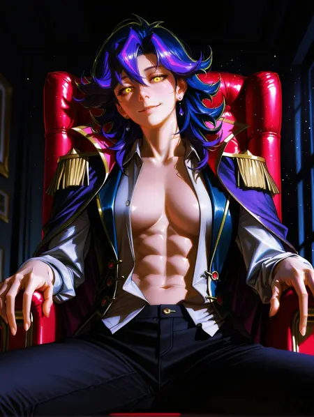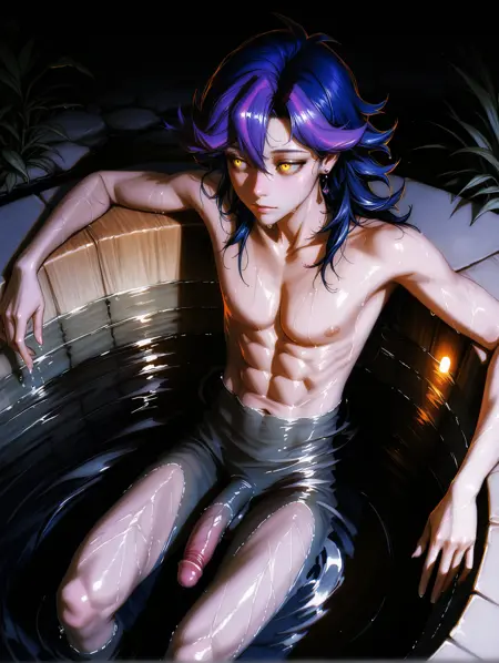 AI 프롬프트 : 1boy, male, multicolored hair, purple hair, blue hair, black hair, yellow eyes, bangs, hair between eyes