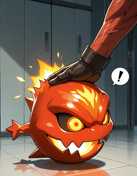 bomb_(ff),no humans,no_legs,sharp teeth,monster,glowing,teeth,orange eyes,lava,colored sclera,red_skin