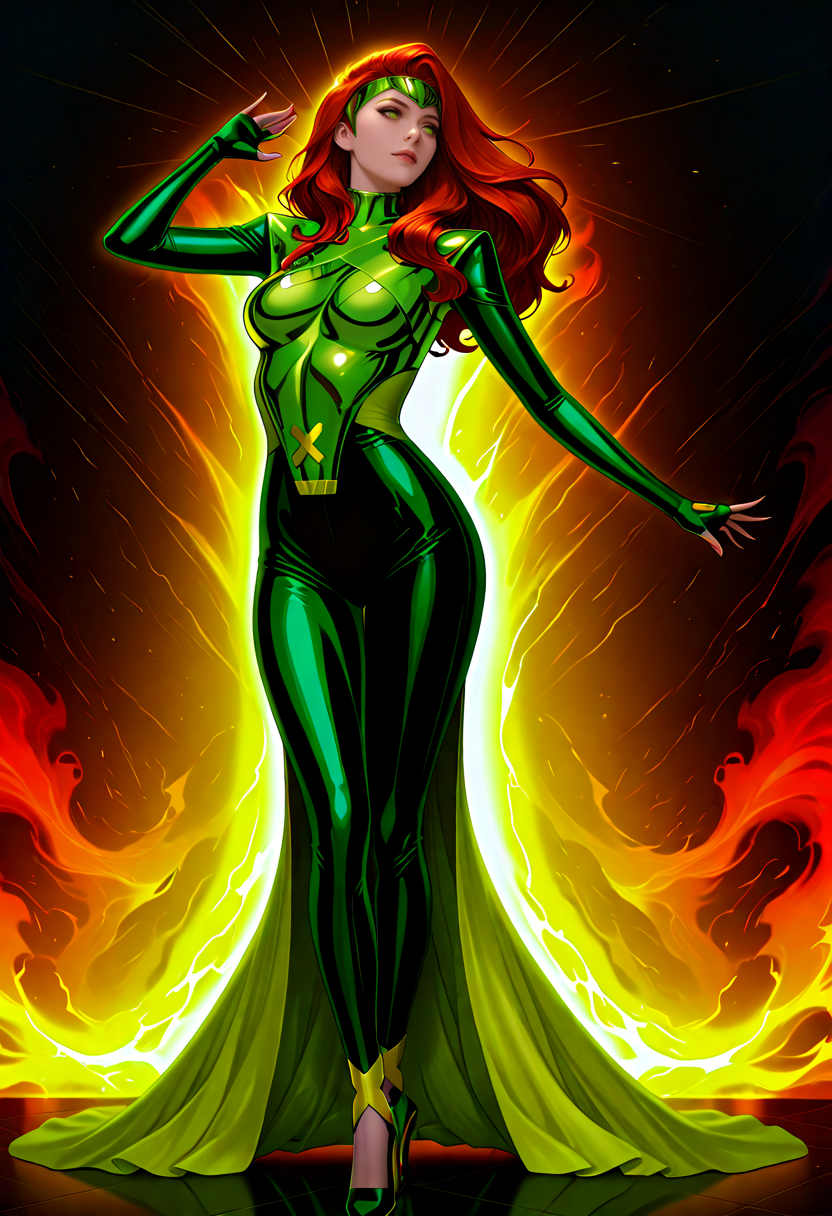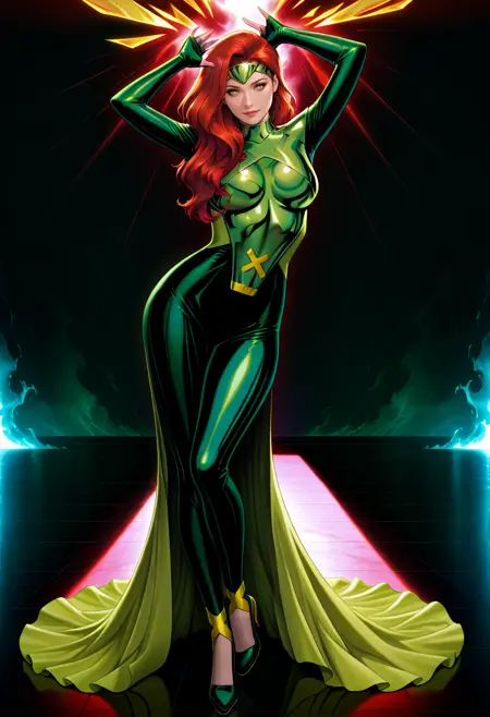 Jean Grey 2021年地狱火舞会服装的角色Lora。提示词“dress, long dress”为可选。