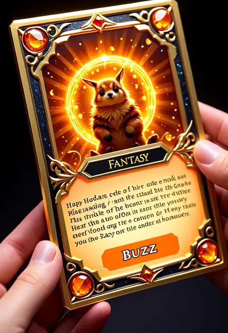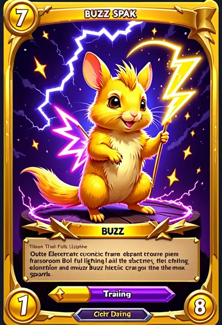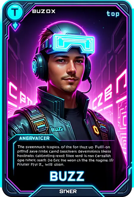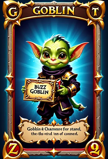 This LoRA brings the ultimate meme TCG experience to life – shiny cards, fakemon, goblins begging for likes, and of course the legendary word BUZZ written right on the card.