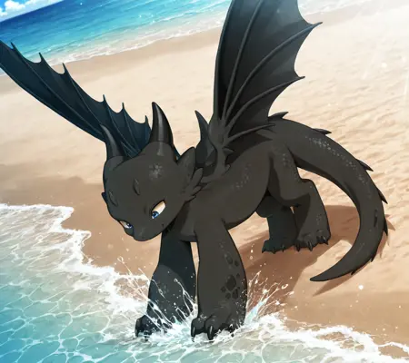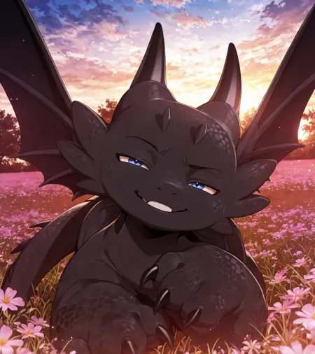备注: 角的数量、面部鳍的数量和爪子的细节有时不一致。在负面提示中添加“牙齿”以避免他的獠牙嘴唇部分被染成白色。