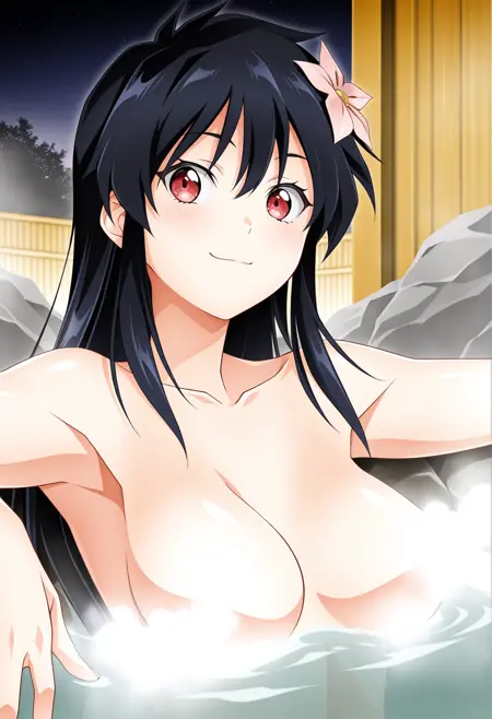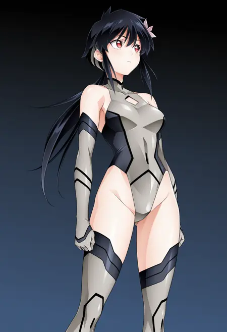 トリガー: jwrwin, 黒髪, 髪を下ろした, 赤い目, 低めのポニーテール, 胸, "または髪を下ろした"