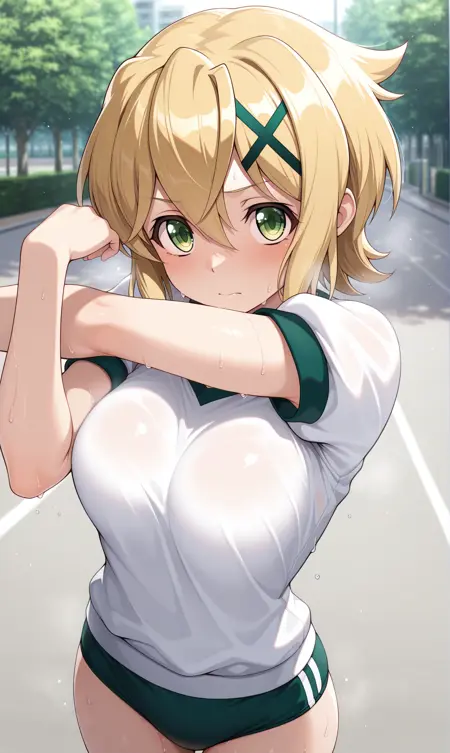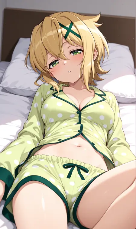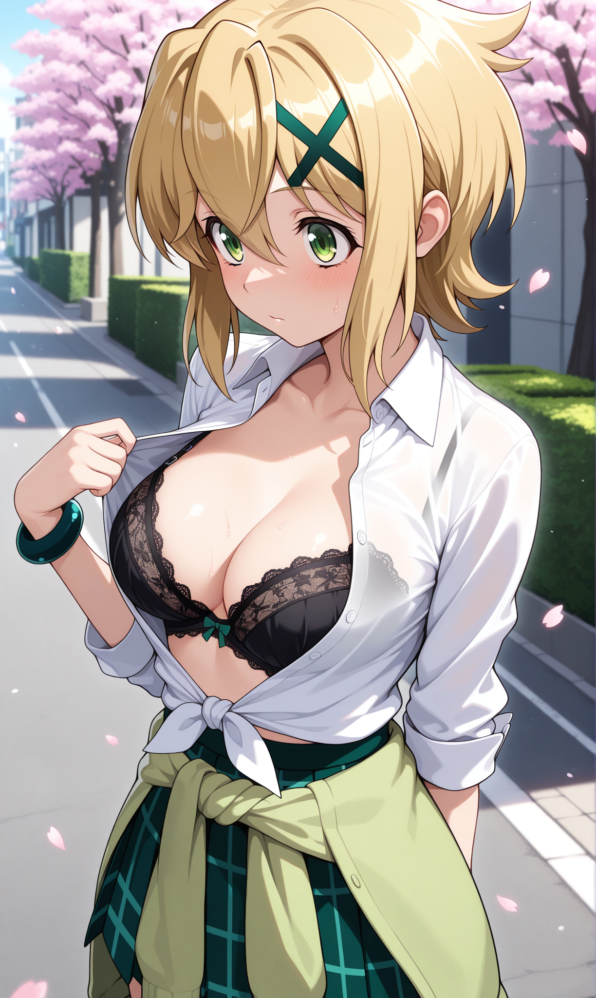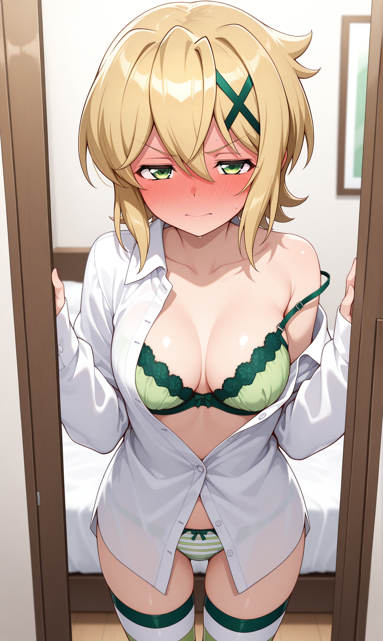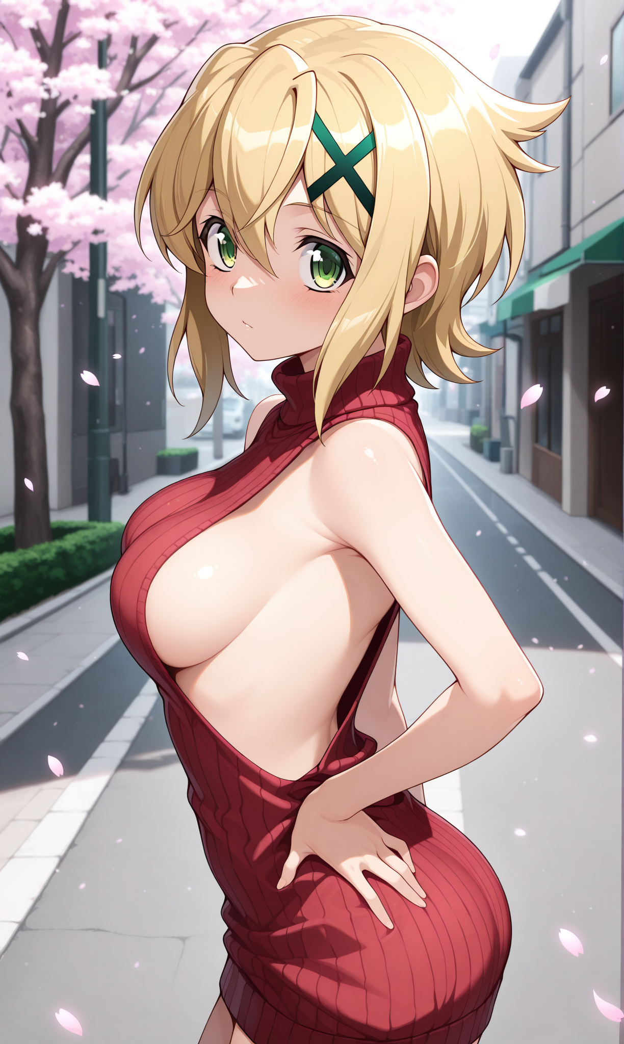 akatsuki kirika, green eyes, blonde hair, sidelocks, short hair, x hair ornament