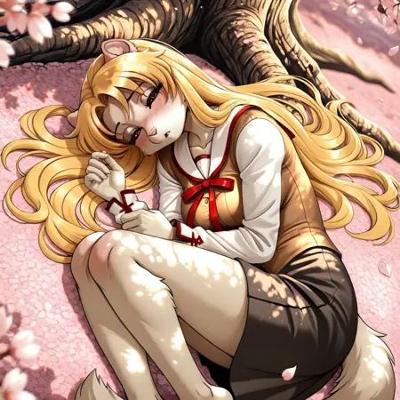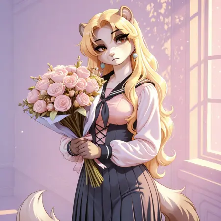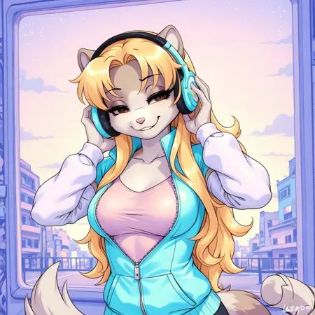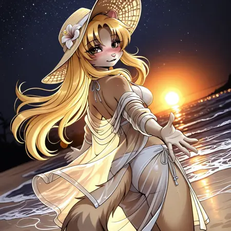 amarissa, 1girl, solo, long hair, blonde hair, animal ears, furry, furry female, brown eyes, breasts, tail,