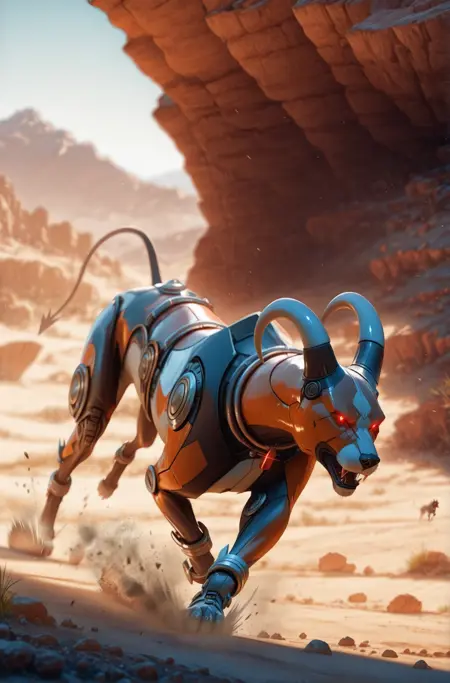 저의 첫 번째 메카 LoRA로, 비인간 전용입니다. 단독으로 0.5-0.9의 가중치로 잘 작동하며, 다른 동물 또는 동물 캐릭터 LoRA와 함께 사용할 수도 있지만, 해당 가중치를 적절히 조정하세요. revAnimated 체크포인트와 일관되게 작동하며, 다른 체크포인트에서는 약간의 운이 필요할 수 있습니다.