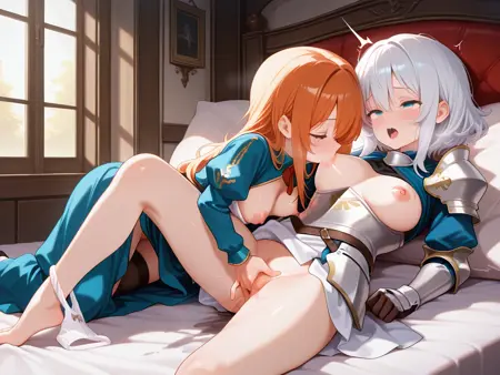 2girls, yuri, yr_pl, hand in panties, licking nipple
