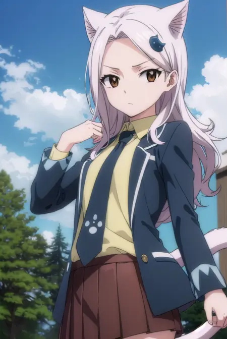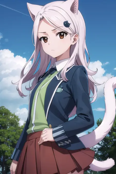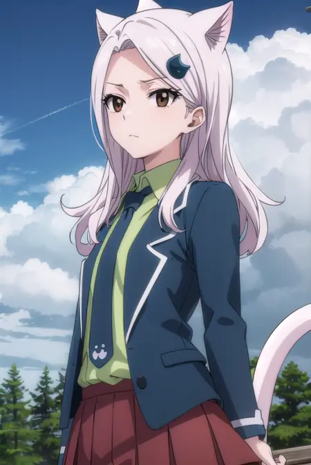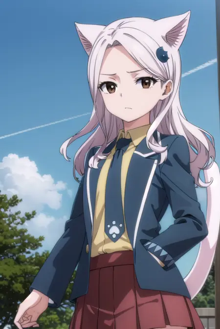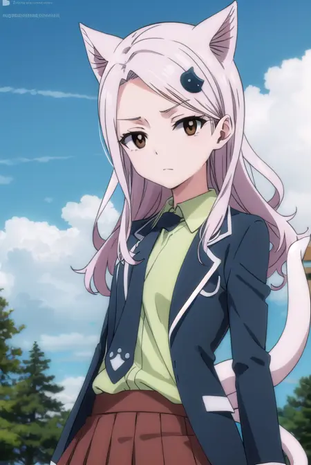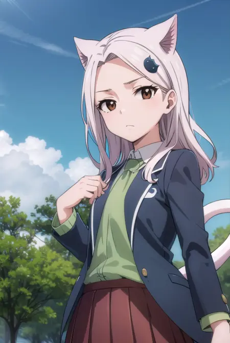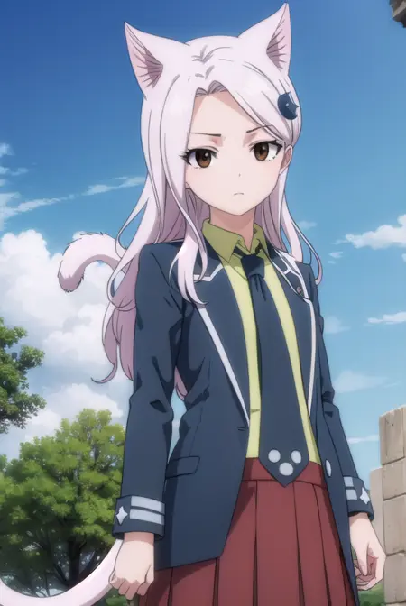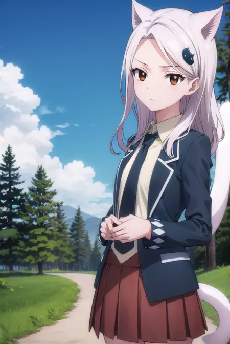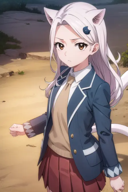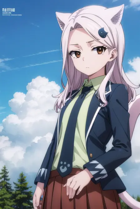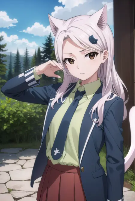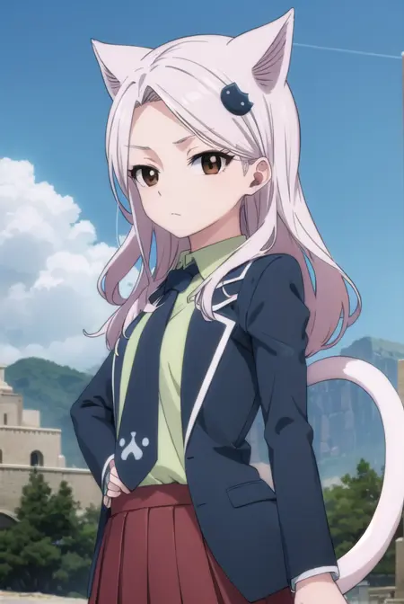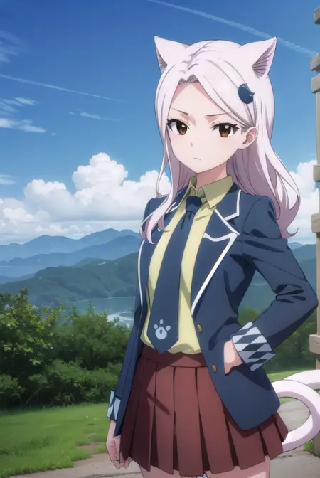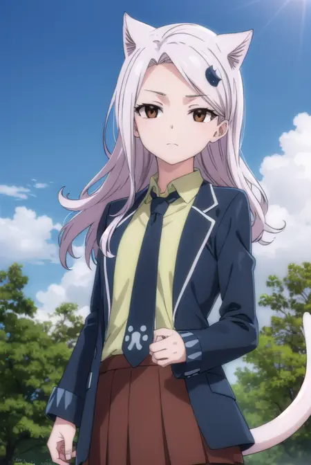 fairy tail carla, 긴 머리, 머리 장식, 동물 귀, (갈색 눈:1.5), 흰색 머리, 고양이 귀,