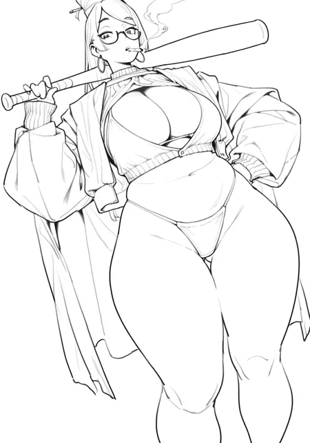 提示词示例:1girl, solo, virgin ribbed sweater, destroyer sweater, dark violet green sweater, navel, thighhighs, smile, looking at viewer, library, thick thighs, wide hips, large breasts, curvy, BREAK character_concept, cowboy_shot, (dutch_angle:1.25), masterpiece, best quality, amazing quality, very aesthetic, absurdres, modern, recent, newest, lora:Ko465_IL_Style:1.25 K0, (monochrome, greyscale)