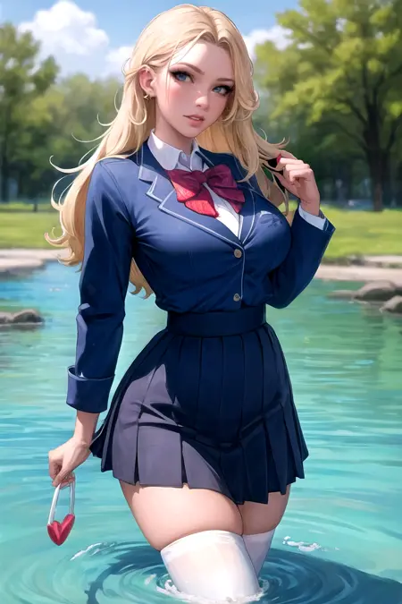 ponyxl_aromasensei_ownwaifu, 1girl, large breasts, jewelry, makeup, piercing, earrings, blush, parted lips, long hair, {nude, nipples, navel | swimsuit | lingerie | shirt | dress},
