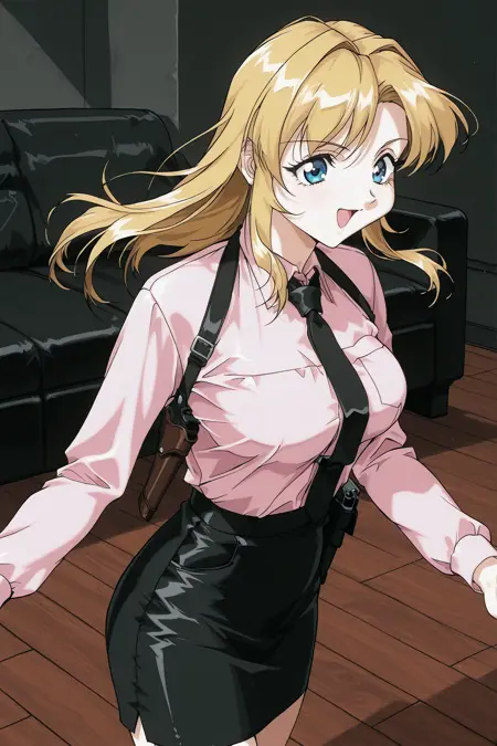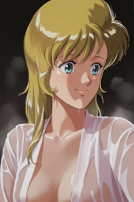 주요 프롬프트: rallyvincent, 금발, 긴 머리, 파란 눈, 레트로 아트 스타일, 1980년대 (스타일)