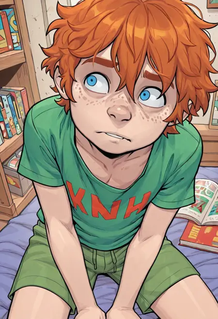Bailey Briggs, Orange Hair, Messy Hair, freckles, blue eyes