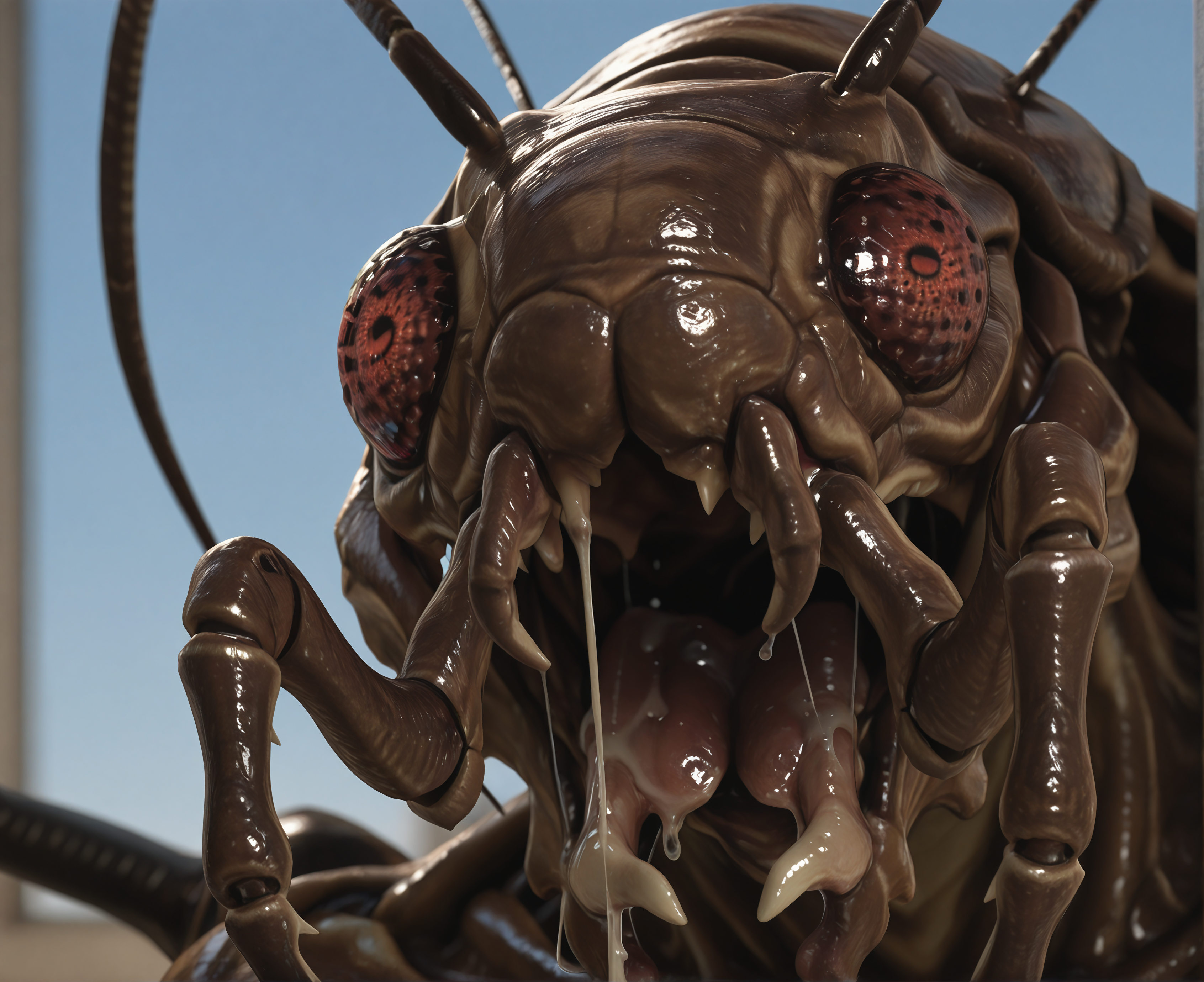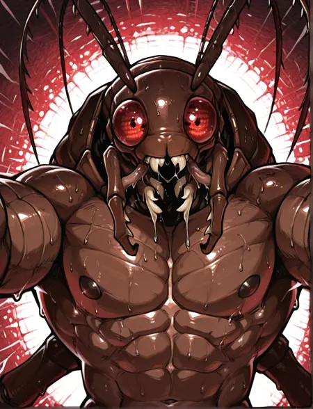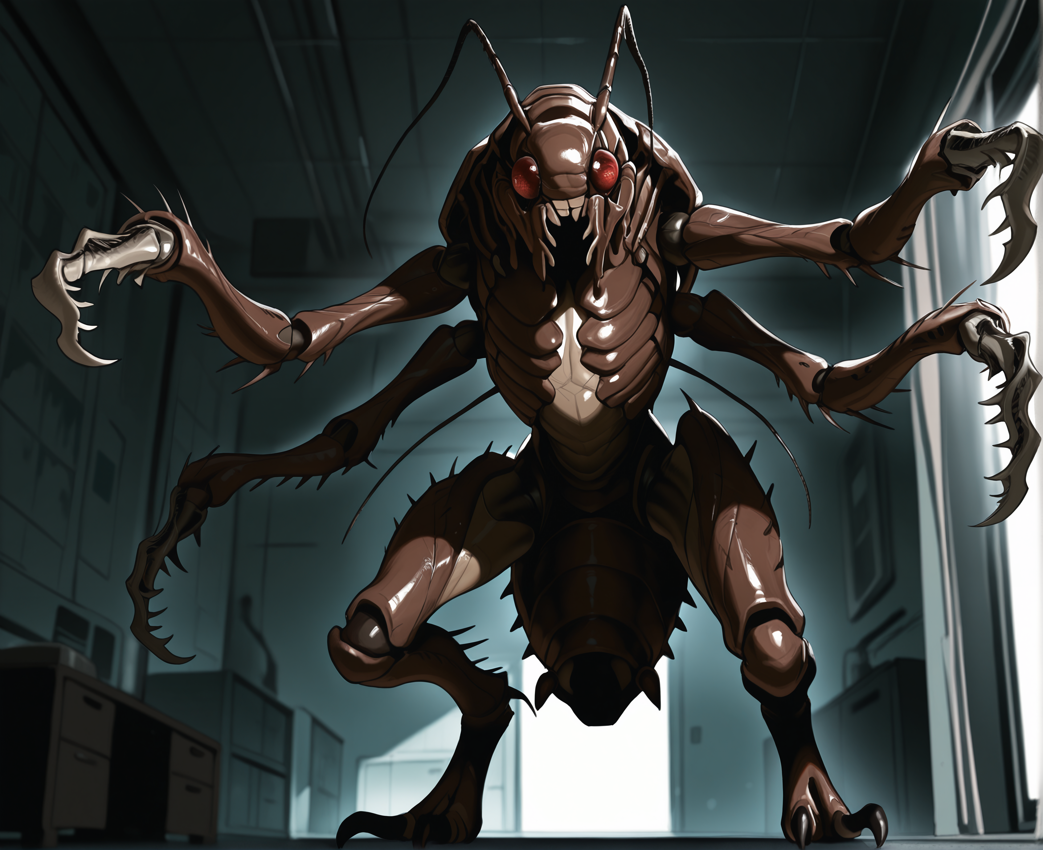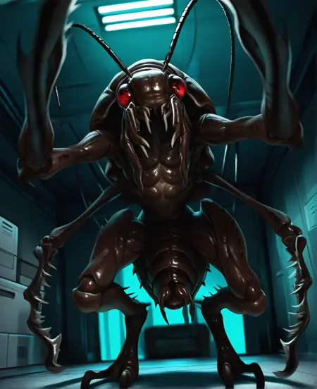 태그: r34p3r, 곤충형, 괴물, 생물, 복부, 접촉각, 벌레 눈, 올셀리, 외골격, 턱, 분절된 몸, 발가락으로 걷는, 두 개의 발가락, 사냥팔, 갈색 피부, 붉은 눈, ...