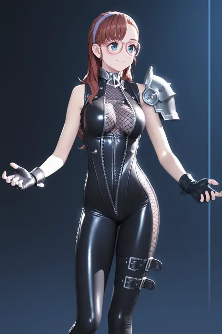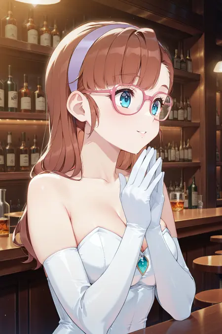 主提示: beckyfarrah,长发,棕发,蓝眼,戴眼镜,粉框眼镜,雀斑,不对称刘海,紫色发带