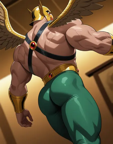 适用于此LoRA的提示词为(Hawkman DCA,肌肉发达,鹰)。