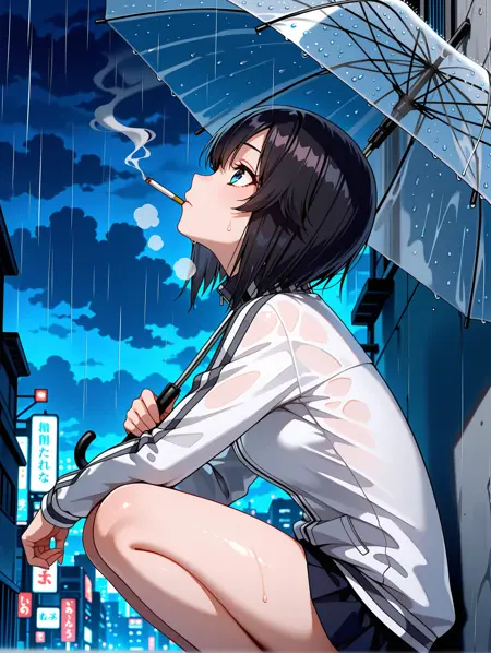 触发词:f_o_hayasui, 黑发, 短发, 蓝眼,