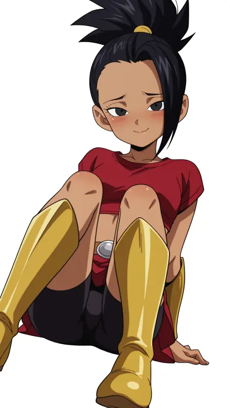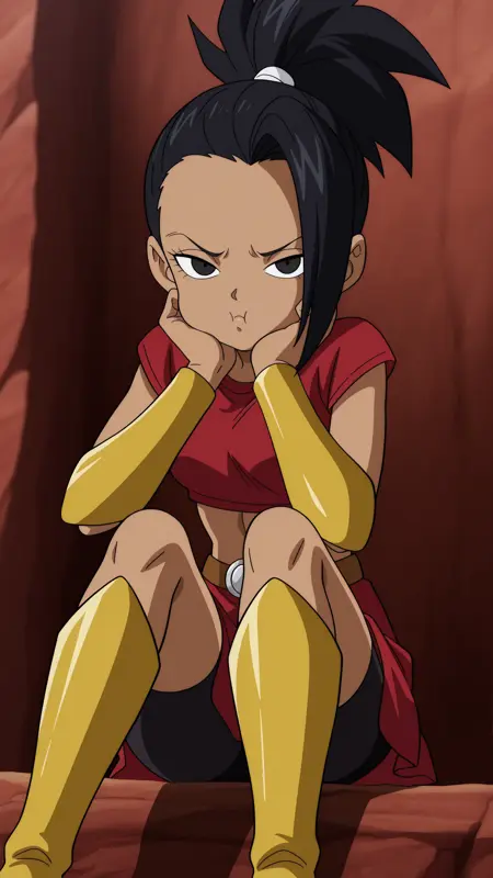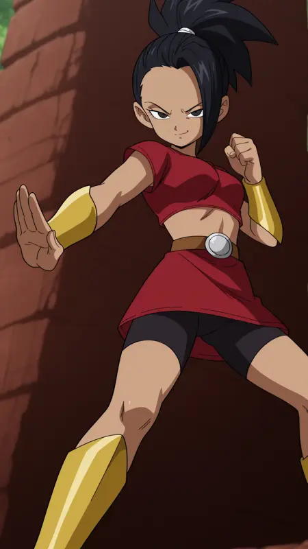 k4l3, 黒髪, 黒目, 高いポニーテール, 立ち上がった髪, 片側の髪束, 暗色肌の女性