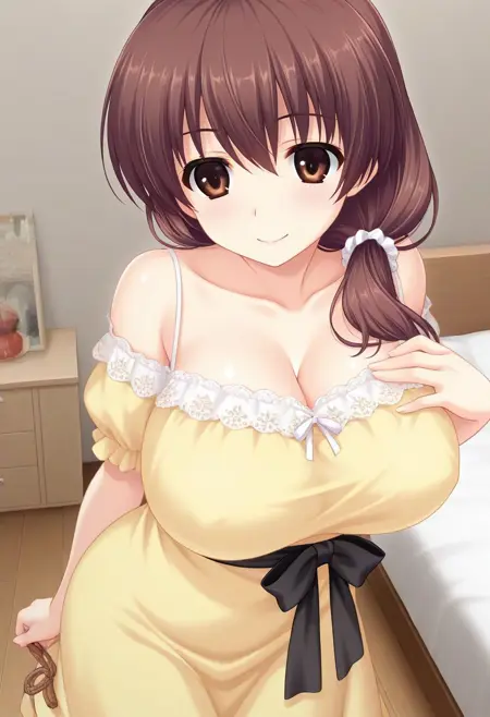 권장 프롬프트: Natsume Kuratsuki, 갈색 눈, 갈색 머리, 반길이 머리, 끝이 평평한 사이드테일, 헤어 스쿠نش, 앞머리,