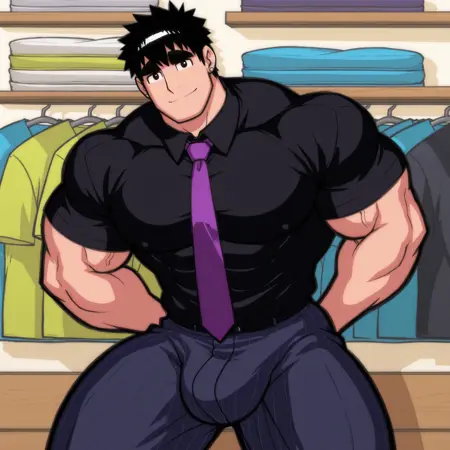 주요 프롬프트: Keric, 검은 머리카락, 뾰족한 머리카락, 두꺼운 눈썹, 은색 귀걸이 착용