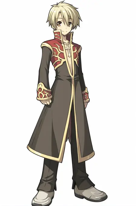 prompt: priestROMale, cross necklace, two-tone coat, red coat, black coat, long sleeves, open coat, high collar, shoes