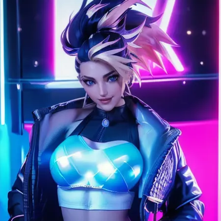 KDA Akali from League of Legends. Kda, Baddest and Allout outfits. They overlap a bit. Its my first Pony multi outfit Lora. Have to get a feel for it ;)