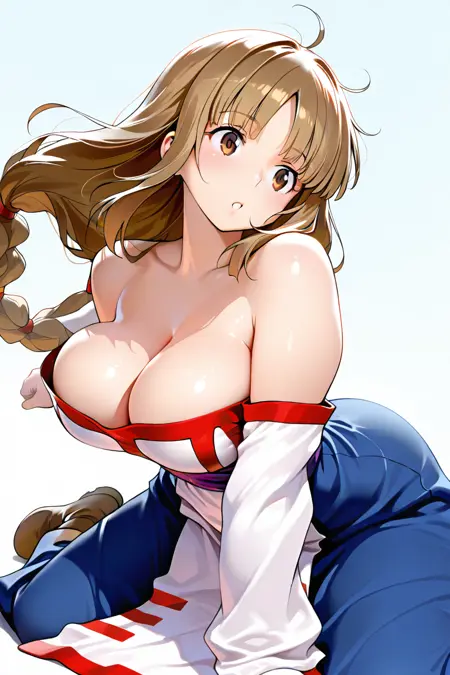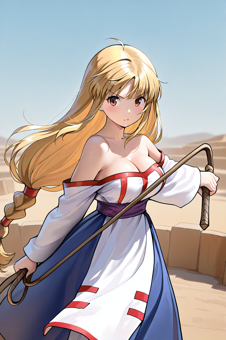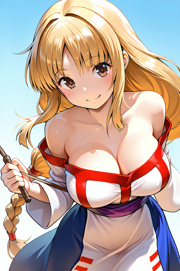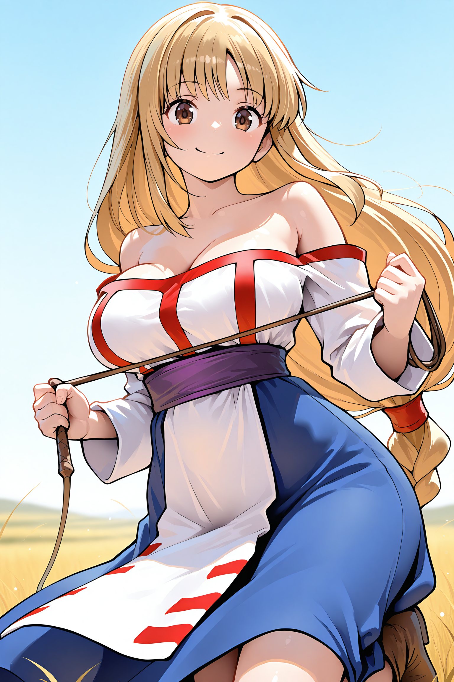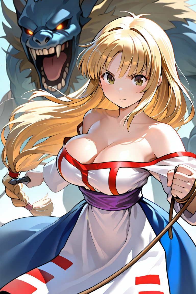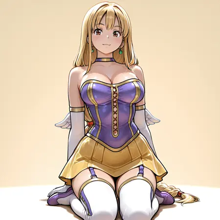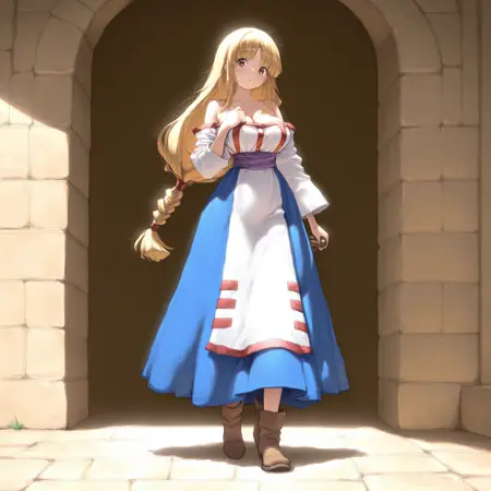 arc_lieza,long hair,blonde hair,brown eyes,low-braided long hair,large breasts,cleavage,