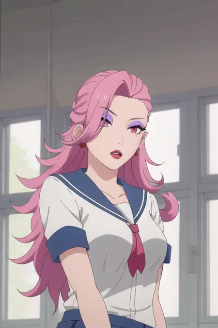 트리거 단어: ibu ibara, 긴 머리, 분홍색 머리, 분홍색 눈