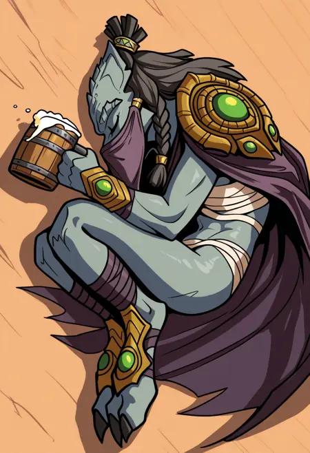 3. Because of the claws and skin color, the base model partially associates Zeratul with an animal. Sometimes he will have a tail, you can try to remove it through the tag "no tail" or using the tag "tail" in the negative promt.