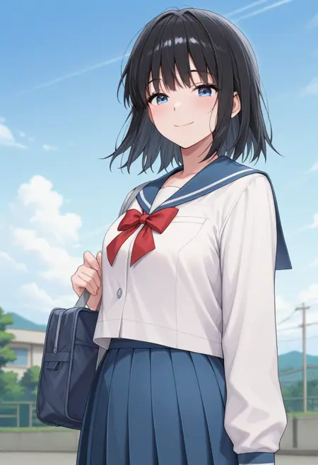 Trigger Words: ureshino kukumi, medium hair, black hair, blue eyes