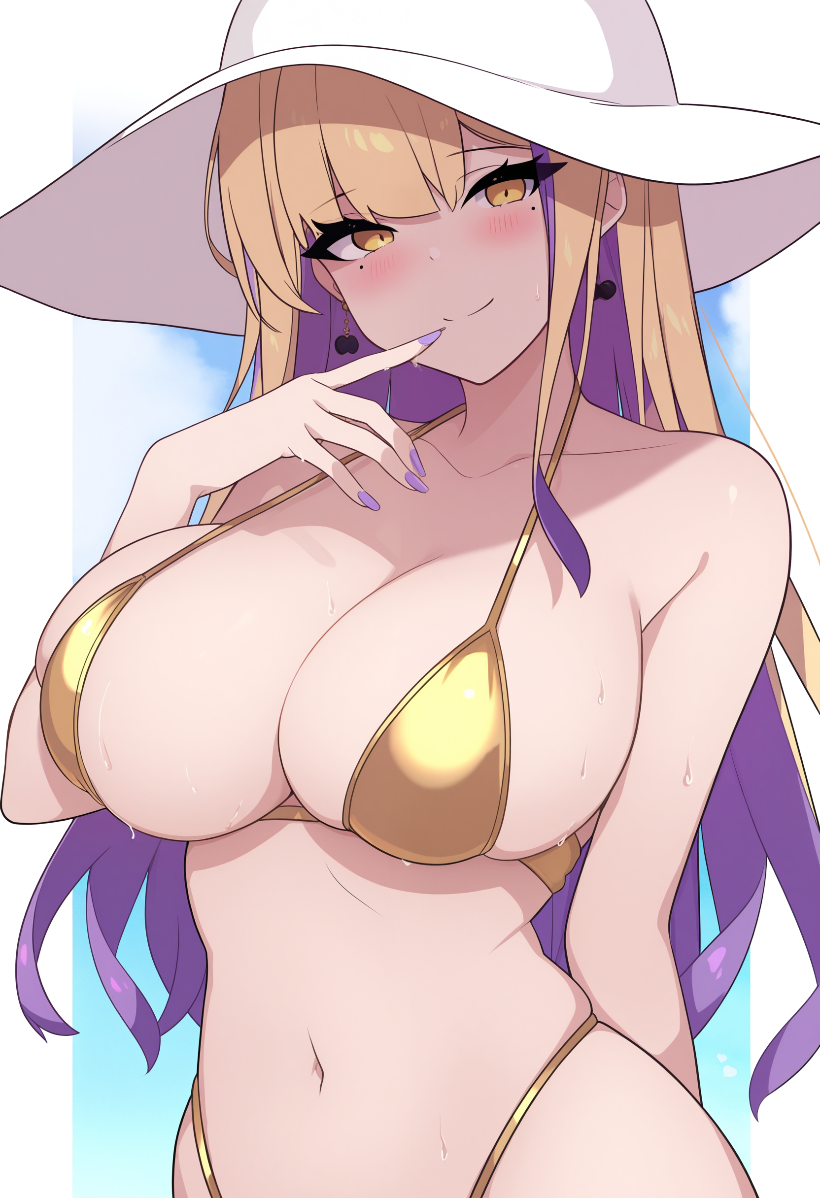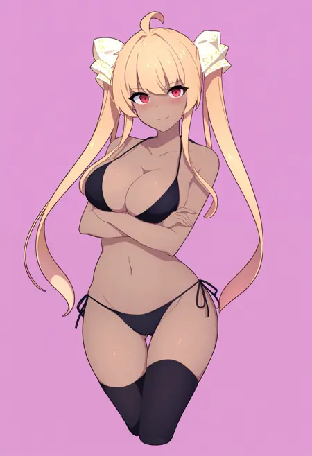 sakyuko - chimasakyuko, 긴 머리, 금발, 분홍색 머리, 다색 머리, 그라데이션 머리, 악마 꼬리, 검은 피부를 가진 여자, 악마 뿔, 악마 날개, 뾰족한 귀