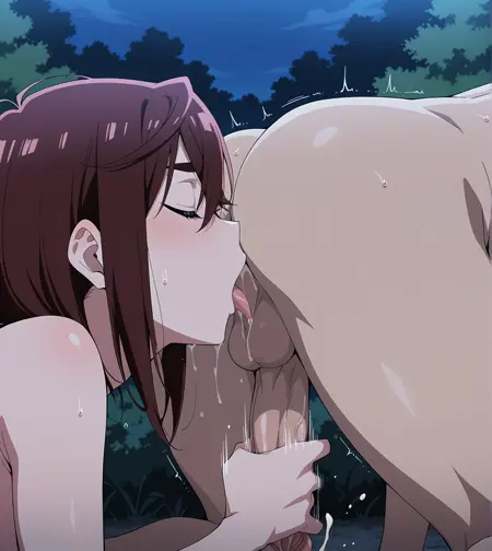 옆에서 본 시점, 혀를 내밀음, 운동 선형, 움직임 흐림, 분사형 정액,