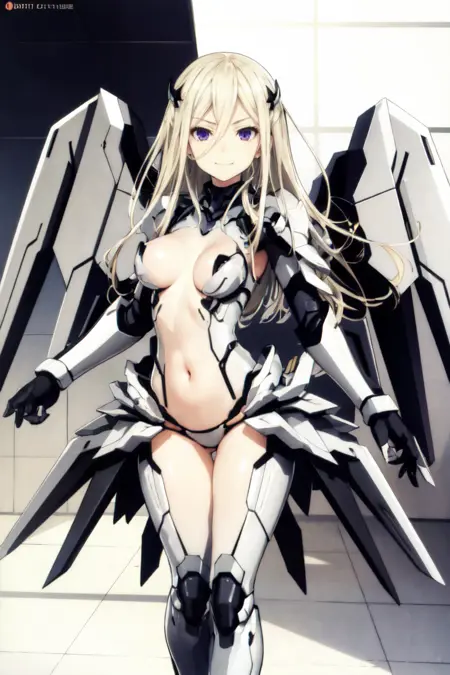 "EllenBattle, mecha musume, armor, bodysuit, mechanical wings"