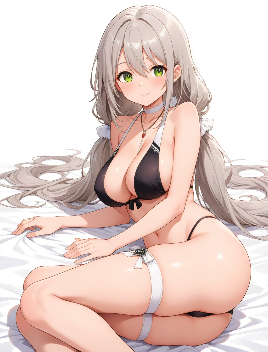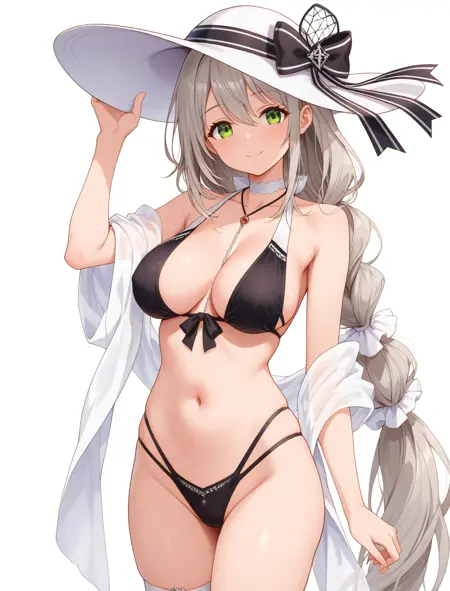 black bikini, sun hat, shawl