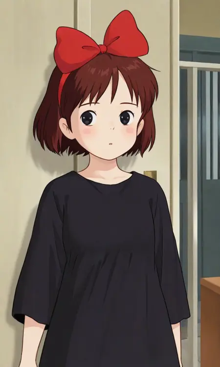 ki, 1girl, short hair, brown hair, black eyes, blush sticker, hair ribbon, bown hair bow,