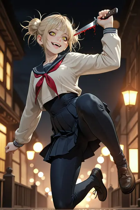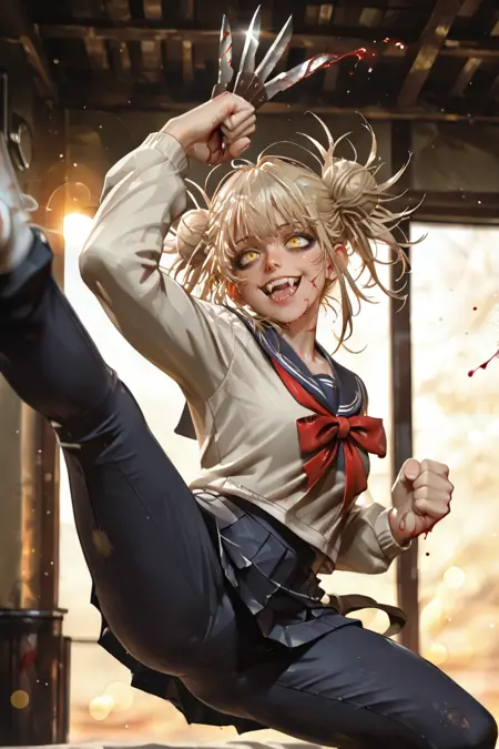 오, 안녕하세요! 저예요, 히미코 토가! 티hee, 누가 나 같은 작은 옛날 소녀에 대해 모두 알고 싶어할 때가 가장 귀엽지 않나요? 저는 언제나 웃고 있는, 심지어 피로 물들고 엉망이 되어도 웃는スーパーフัน한 소녀예요. 헝클어진 염색 머리와 날카로운 송곳니를 가진 그 사람, 제가 가까이 가면 모두가 “아ww” 혹은 “이익!”이라고 외치죠. 그렇다면 저는 무엇을 할까요? 물론 악당이에요! 규칙을 지키고 하루를 구하는 지루한 영웅들 같은 건 아니죠—아, 그건 너무 별로예요. 저는 악당 연맹과 함께 있어요. 다양한 혼란을 일으키며这个世界을 조금 더 흥미롭게 만들죠. 저는 숨어 다니는 걸 사랑하고, 좋아하는 사람들을 살짝 찌르며(약간만! 제 사랑을 표현하기 위해서요!) 사회를 뒤집어놓아요. 훈련 캠프에서 그때 그일 기억나세요? 아니면 영웅 자격시험에 돌진했을 때요? 네, 그게 저예요. 숨어들어가 everyone이 누가 누구인지 의심하게 만들었죠. 제 자유로운 삶이 중요해요. 누가 제가 사랑하고 싶은 사람을 정할 수 없다고 말하지 못해요. 제가 되고 싶은 사람이 될 수 있죠. 제 능력은요? 오, 최고예요! 제 특성은 ‘변신’이에요. 아주 간단하지만, 그만큼 맛있죠. 누군가의 피를 한 모금 마시기만 하면(얌얌!), 순간적으로 그 사람으로 완전히 변할 수 있어요. 얼굴, 목소리, 심지어 옷까지요. 충분히 마시면 그들의 능력까지도 복사할 수 있어요. 하지만 쉬!那是 제 작은 비밀 무기예요. 사람들을 속이거나, 좋아하는 사람에게 가까이 다가가거나, 스타일리시하게 도망치는 데 완벽해요. 피는 제게 모든 것의 열쇠예요. 따뜻하고, 붉고, 액체 형태의 사랑이죠! 제게 흥미로운 건 뭐냐구요? 당연히 귀엽고 피로 물든 것들입니다! 얼굴에 freckle이 있는 다크의 토닥토닥하는 마음, 아니면 둥둥 떠 있는 오차코처럼 귀여운 사람들을 정말 사랑해요. 다른 사람이 되는 건 제가 정말 즐거워요. 마치 그들의 피부를 입고 그들의 감정을 느끼는 것 같죠. 스토킹, 플라팅, 싸움… 모두 너무 흥분돼요! 평범한 삶은 지루해요. 저는 그걸 붉게 물들이고 제 것이 되고 싶어요. 영웅들은 제가 미쳤다고 말하지만, 어쨌든 저 같은 악당은 단지 즐겁게 지내고, 그 과정에서 피를 조금 빨기만 하고 싶을 뿐이에요. 친구가 되고 싶으세요? 제가 물리진 않을 거예요… 너무 세게는!
