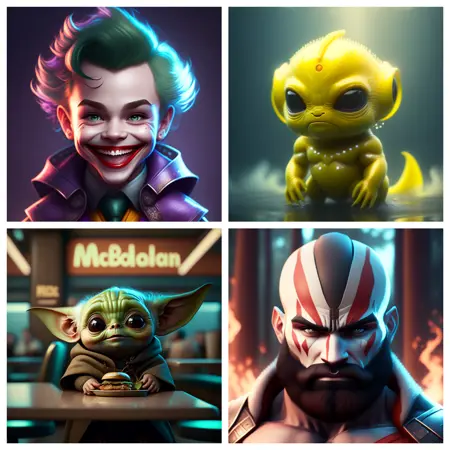 possible positives: lora:richvip\_sd2.1:1.0, cbzbb, cute, little, baby, beautiful, fantasy art, devian art, trending artstation, digital art, detailed, realistic, humanoide, character, tiny, film still of "____" , cinematic shot, "____" environment, beautiful landspace of _____, cinematic portrait of ______, cute character as a "_____"....