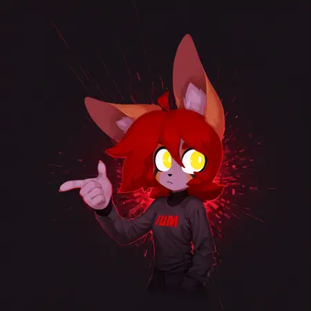 kami, mammal, hair, felid, domestic cat, red_hair, inner_ear_fluff, topwear, fur, black facial markings, big ears, gesture, yellow_eyes, tuft,
