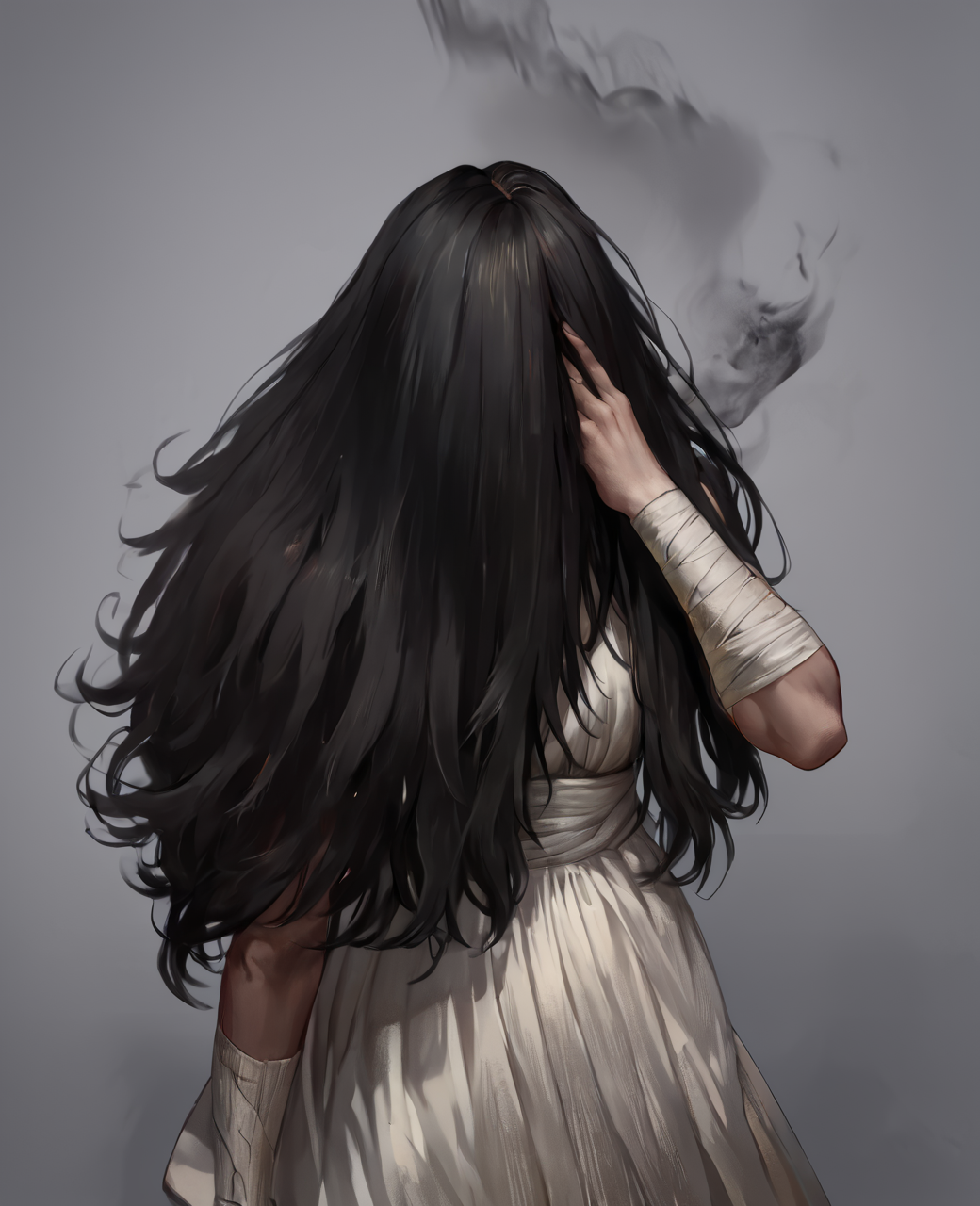 anima,黑发,凌乱的头发,长发,黑眼睛或白眼睛,