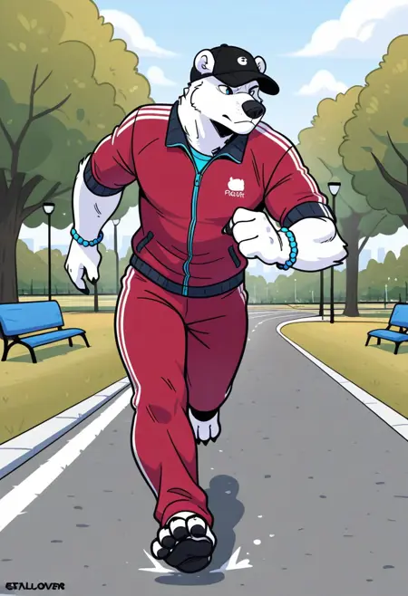 연인들: etalusLovers, 극한곰, 남성, 퓨리, 흰 털, 파란 눈, 점퍼, 야구 모자, 팔찌